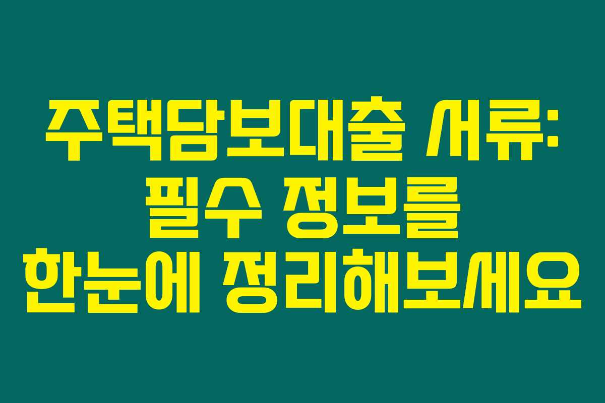 제가 직접 확인해본 바로는 주택담보대출을 이용하려는 분들이 가장 많이 궁금해하는 부분이 바로 필수 서류에 대한 정보입니다. 주택을 담보로 한 대출을 받기 위해서는 필요한 서류들이 많은데요, 이 글에서는 구체적으로 필요한 서류를 정리해보았습니다. 아래를 읽어보시면 주택담보대출 시 참고해야 할 내용을 쉽게 이해하실 수 있을 것입니다.