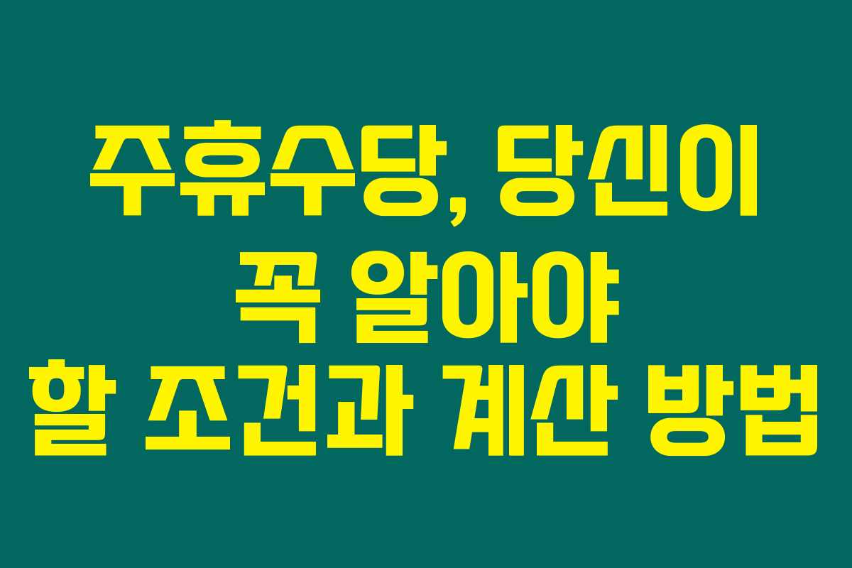 아래를 읽어보시면 주휴수당의 조건과 계산 방법에 대해 상세히 알려드립니다. 제가 직접 체크해본 결과, 주휴수당은 근로자가 받는 중요한 수당이지만, 많은 사람들이 놓치고 있더라구요. 여기에서는 주휴수당의 조건부터 계산법까지 쉽게 설명해드릴게요.