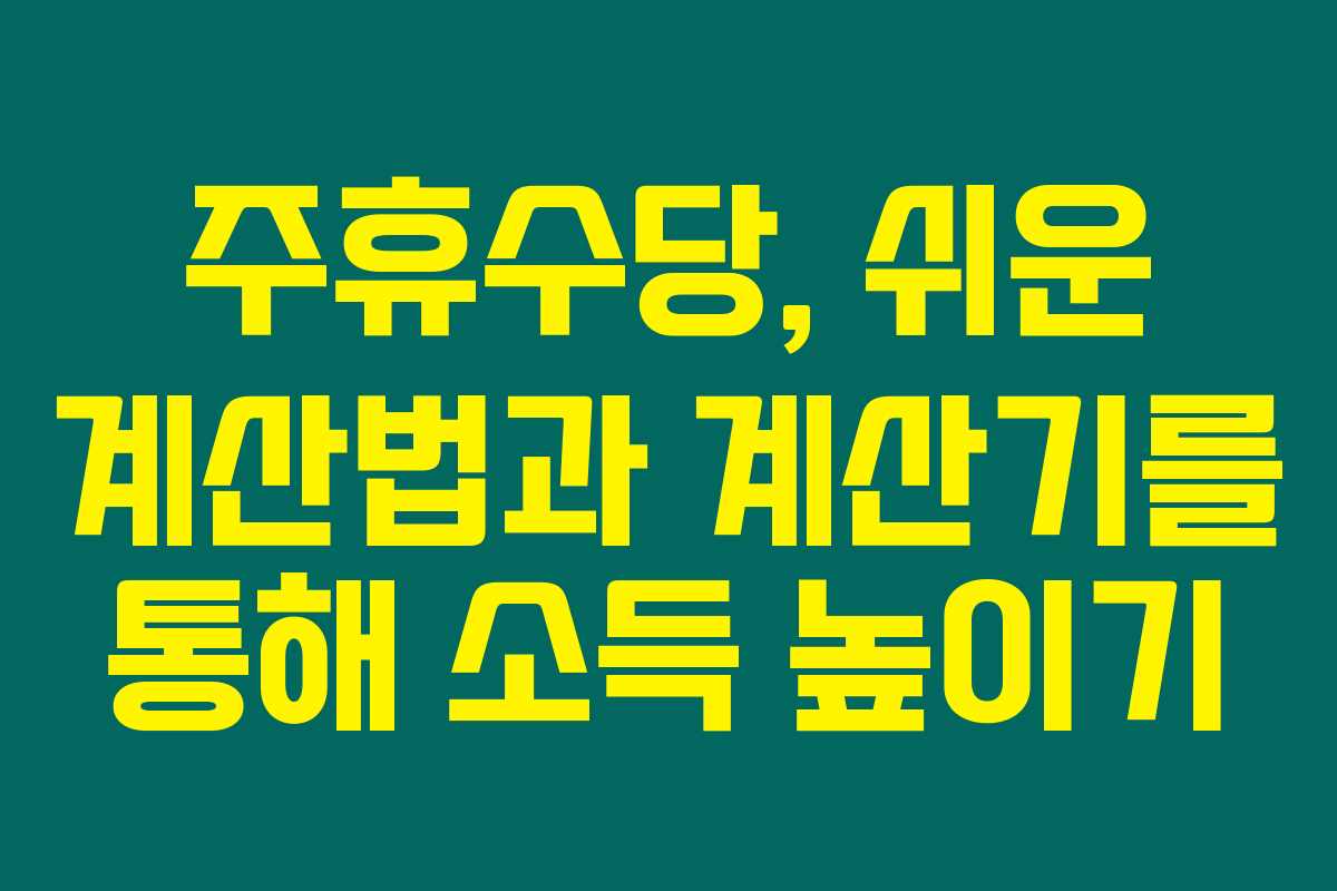 주휴수당 계산기를 통해 자신의 근로시간과 시급을 입력하면 쉽게 주휴수당을 계산할 수 있습니다.