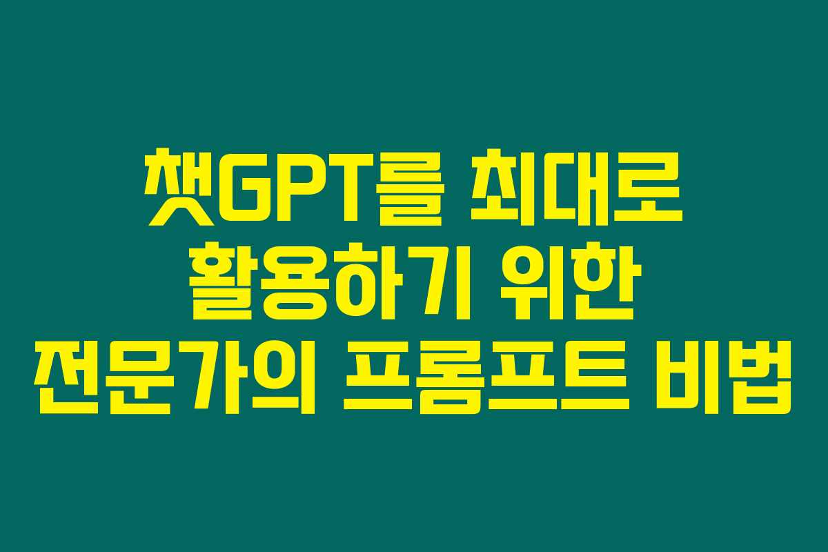 챗GPT를 최대로 활용하기 위한 전문가의 프롬프트 비법