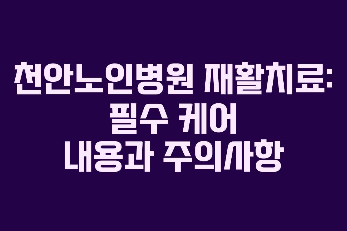 천안노인병원에서 제공하는 재활치료는 노인 환자의 건강 회복을 위해 필수적인 요소입니다. 적절한 관리와 예방을 통해 건강한 노후를 준비하시기 바랍니다.