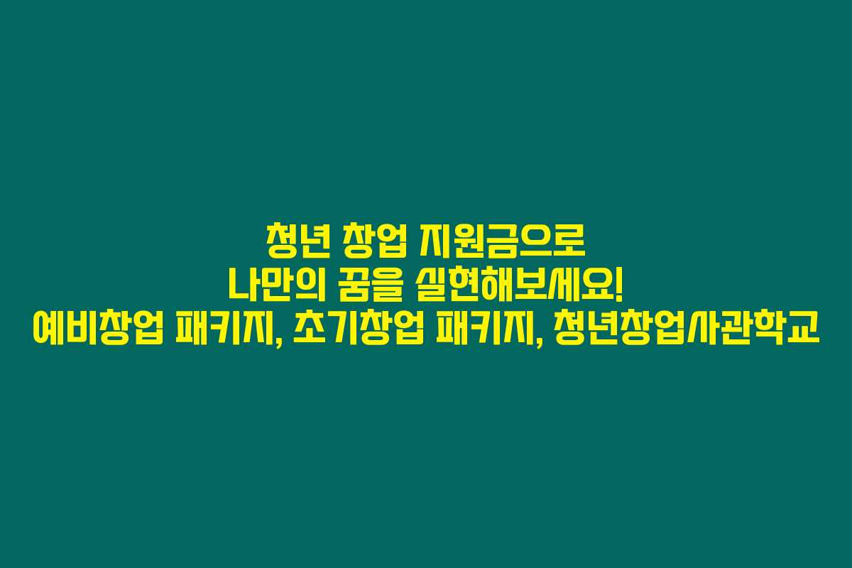 청년 창업 지원금으로 나만의 꿈을 실현해보세요! 예비창업 패키지, 초기창업 패키지, 청년창업사관학교