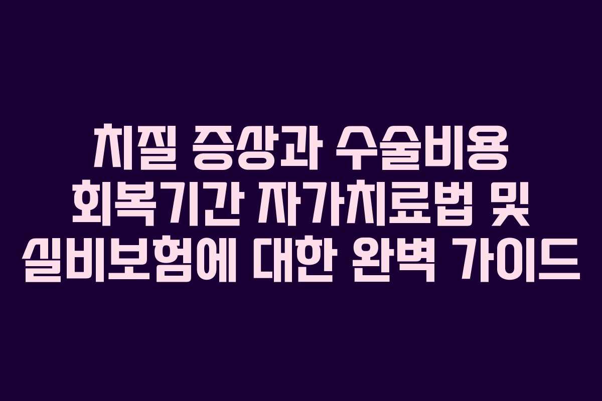 치질 증상과 수술비용 회복기간 자가치료법 및 실비보험에 대한 완벽 가이드