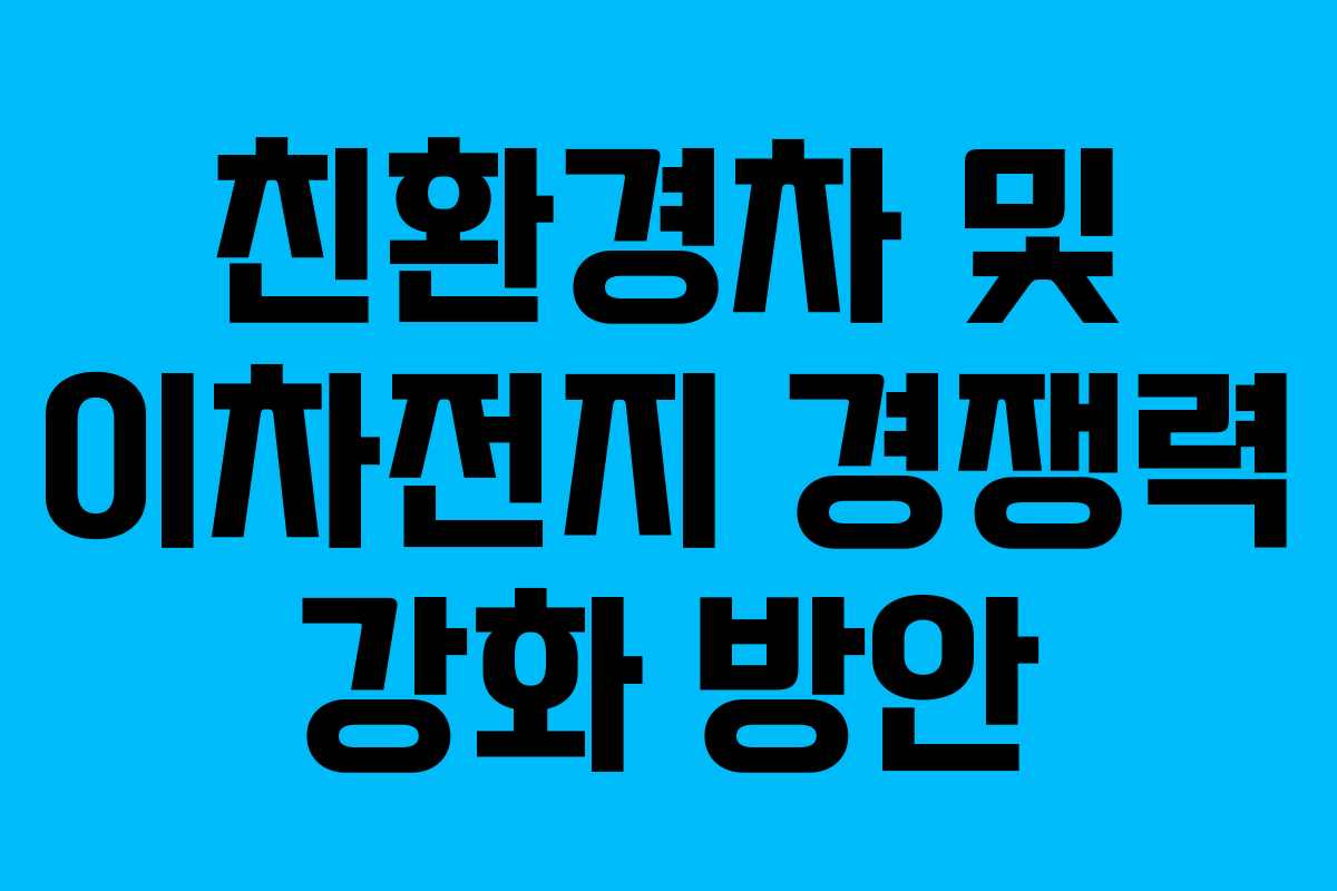 최근 산업통상자원부는 친환경차와 이차전지의 경쟁력을 높이기 위한 새로운 방안을 발표하였습니다. 이 방안은 전기차에 대한 보조금 확대와 다양한 지원 정책을 포함하고 있습니다. 이번 글에서는 해당 방안의 주요 내용을 살펴보겠습니다.