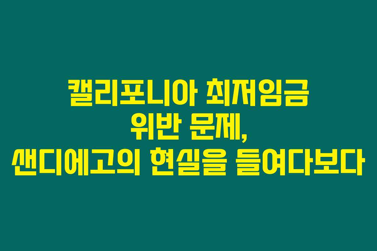 최근 조사에 따르면, 샌디에고를 포함한 캘리포니아의 최저임금 위반 건수가 두 배 이상 증가했어요. 이는 무엇 때문일까요? 여러 요인이 복합적으로 작용하고 있는 듯해요.