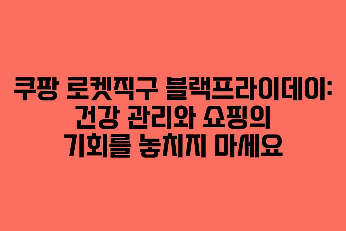 쿠팡의 로켓직구 블랙프라이데이를 통해 다양한 건강 관리 제품과 생활용품을 득템하고, 쇼핑을 통해 알뜰한 소비를 즐기세요!