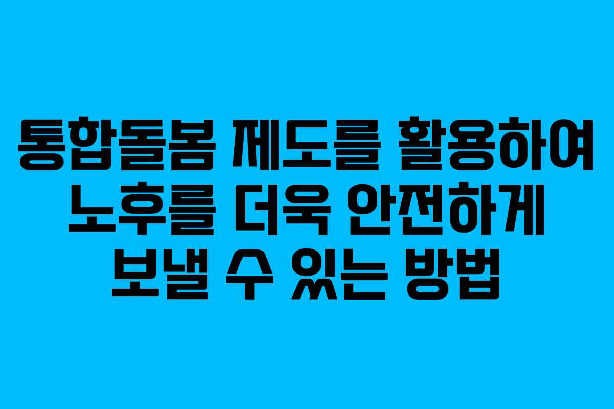 통합돌봄 제도를 활용하여 보다 나은 노후를 보낼 수 있는 방법을 정리해 보았습니다. 다음은 실전 가이드입니다.
