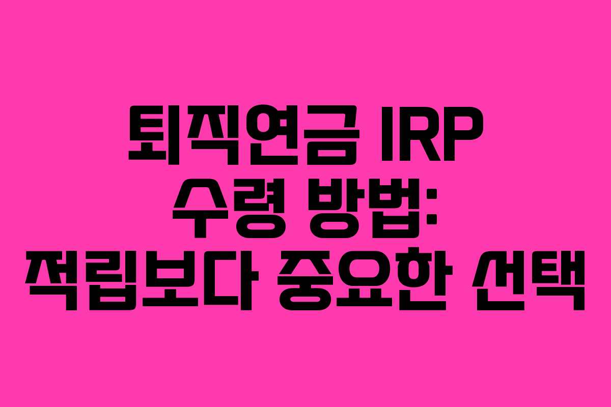 퇴직연금 IRP는 크게 일시금과 연금으로 수령할 수 있습니다. 2022년부터는 퇴직금을 개인형 IRP 계좌로 수령해야 하며, 이를 통해 더 유리한 세금 조건을 적용받을 수 있습니다.