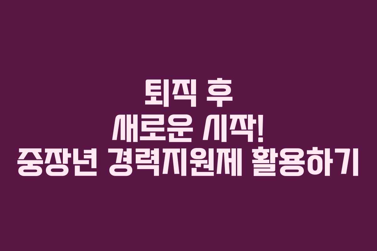 퇴직 후 새로운 시작을 꿈꾸는 모든 중장년층에게 ‘중장년 경력지원제’는 든든한 지원이 될 것입니다. 적극적으로 정보를 찾아보고 신청해 보세요!