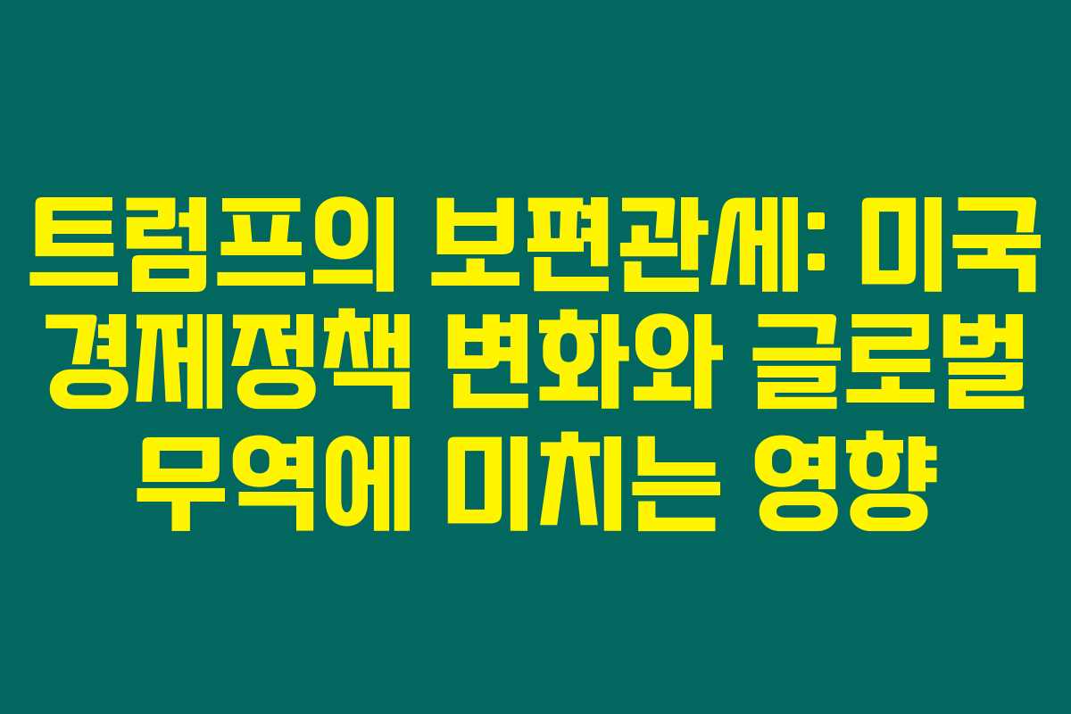 도널드 트럼프 대통령의 보편관세 도입이 공식화되면서, 전세계 경제와 무역에 미칠 영향이 주목받고 있습니다. 보편관세는 모든 수입품에 동일한 세율을 부과하는 새로운 경제 정책으로, 미국 제조업을 보호하고 무역적자를 줄이기 위한 전략으로 보고됩니다. 하지만 이러한 정책이 실제로 시행될 경우, 물가 상승과 글로벌 무역 갈등 등 여러 부작용이 예상됩니다. 아래를 읽어보시면 보편관세의 개념과 배경, 미국 및 한국 경제에 미치는 영향과 대응 방안에 대해 심층적으로 알아보실 수 있습니다.