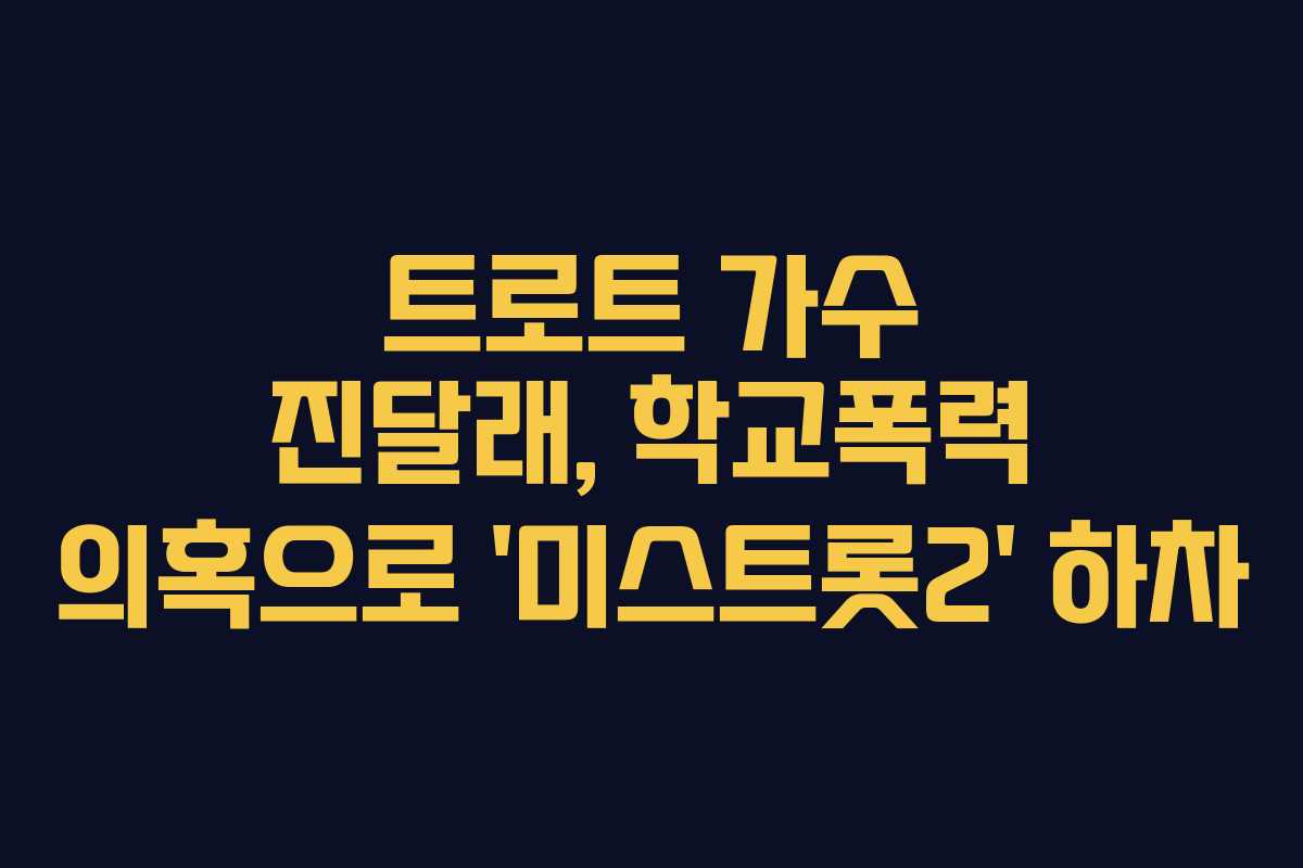 최근 트로트 가수 진달래(본명 김은지·35)가 학교폭력 의혹으로 인해 TV조선의 트로트 경연 프로그램 ‘미스트롯2’에서 하차하게 되었습니다. 진달래의 소속사인 티스타엔터테인먼트는 공식 성명을 통해 그녀가 과거의 잘못에 대해 모든 책임을 지며 프로그램에서 자진 하차할 것이라고 밝혔습니다.
