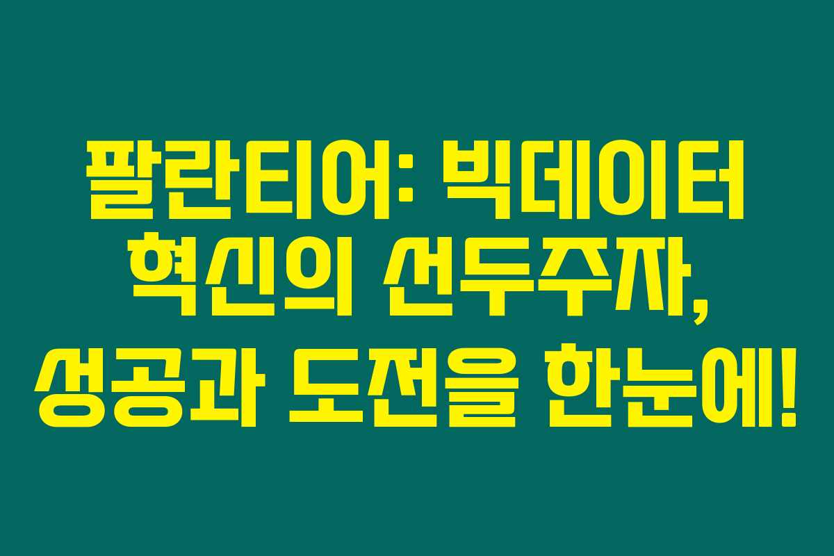 제가 직접 경험해본 결과로는, 팔란티어는 미국에서 빅데이터를 활용하는 소프트웨어 기업 중 가장 주목받는 기업이었어요. 빅데이터의 중요성이 부각됨에 따라 이 기업은 많은 투자자들의 눈길을 끌었습니다. 아래를 읽어보시면 팔란티어의 전반적인 현황과 전망에 대해 자세히 알아보실 수 있을 것입니다.