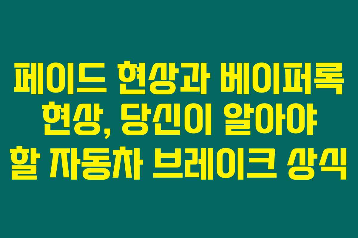 자동차를 운전하면서 브레이크가 제대로 작동하지 않는다면 정말 아찔할 수 있습니다. 특히 페이드 현상이나 베이퍼록 현상은 많은 운전자가 겪는 문제 중 하나라면, 이 두 가지 상식에 대해 잘 알고 계신가요? 자동차를 운전하는 사람이라면 필수로 확인해야 할 내용이랍니다. 아래를 읽어보시면 이 두 가지 현상의 원인과 해결법, 예방책을 쉽게 이해하실 수 있어요.