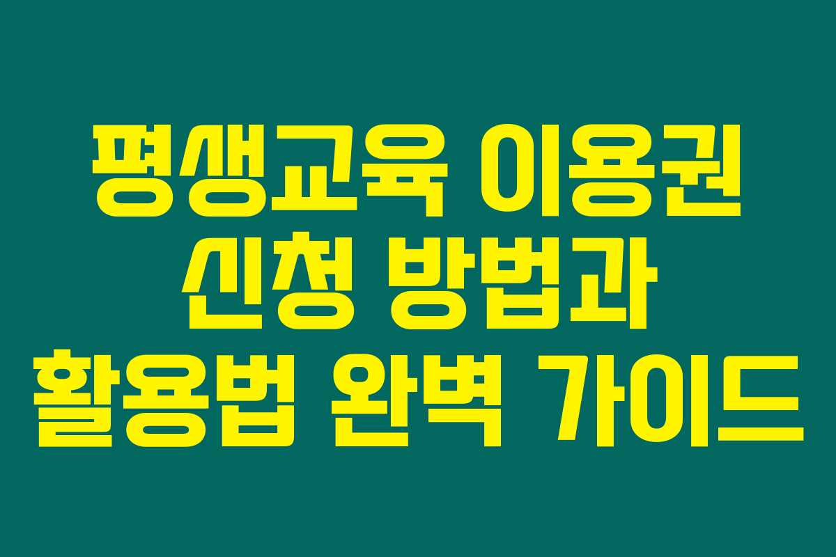 평생교육 이용권 신청은 간단한 절차로 이루어집니다. 제가 직접 체크해본 바로는 다음과 같은 방법으로 신청하면 됩니다: