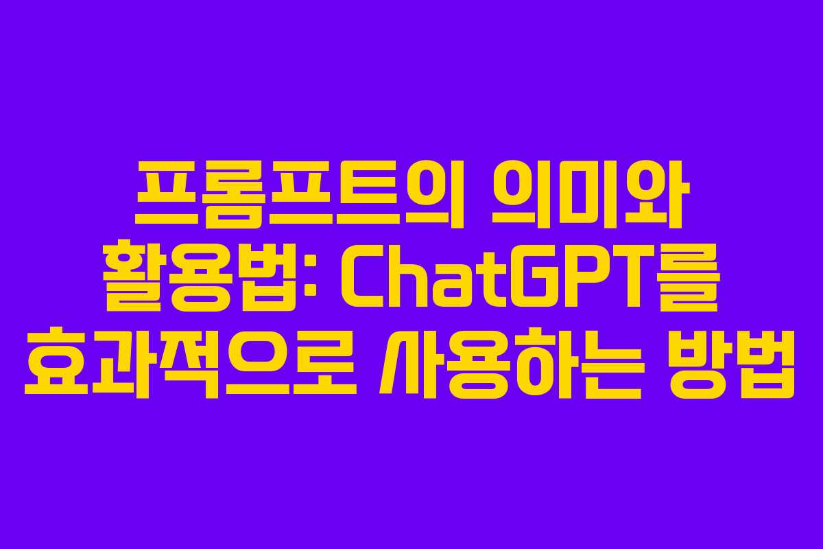 프롬프트의 의미와 활용법: ChatGPT를 효과적으로 사용하는 방법