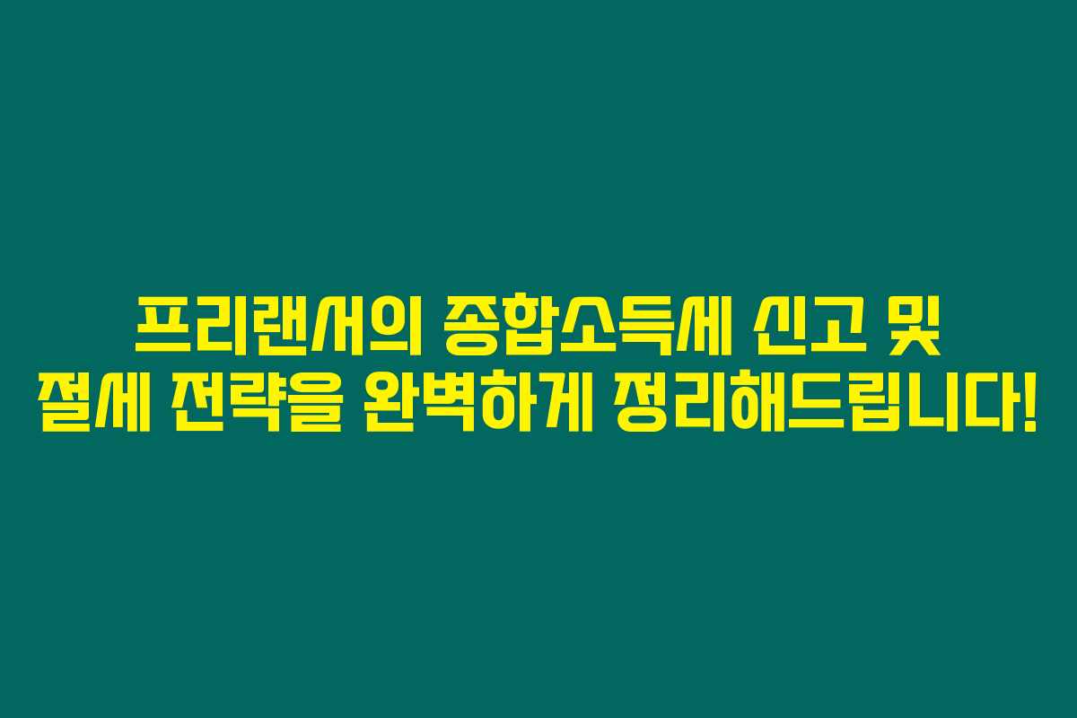 디스크립션: 제가 판단하기로는, 프리랜서를 위한 종합소득세 신고 과정 및 절세 팁과 사업자 등록에 대한 정보를 자세히 정리했습니다. 이 글에서는 프리랜서 여러분이 꼭 알아야 할 핵심 정보들을 담았습니다. 아래를 읽어보시면 도움이 될 것입니다.