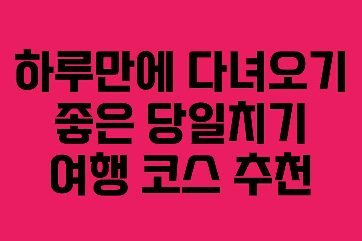 하루만에 다녀오기 좋은 당일치기 여행 코스 추천