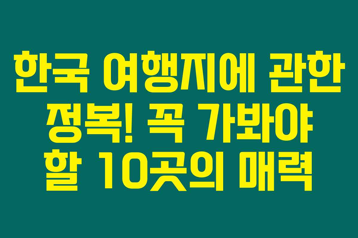 제가 직접 체크해본 바로는, 한국은 여행자로서 정말 매력적인 나라에요. 아름다운 자연경관부터 깊은 역사, 그리고 다양한 문화가 어우러져 있어 매년 많은 여행자들이 한국을 찾지요. 특히 요즘 트렌드에 맞춘 여행지 추천이 더욱 중요해졌다고 생각해요. 아래를 읽어보시면 한국에서 반드시 방문해야 할 10곳의 매력과 각 지역의 특징을 살펴볼 수 있을 거에요. 여러분의 여행 계획에 도움을 줄 수 있기를 바랍니다!