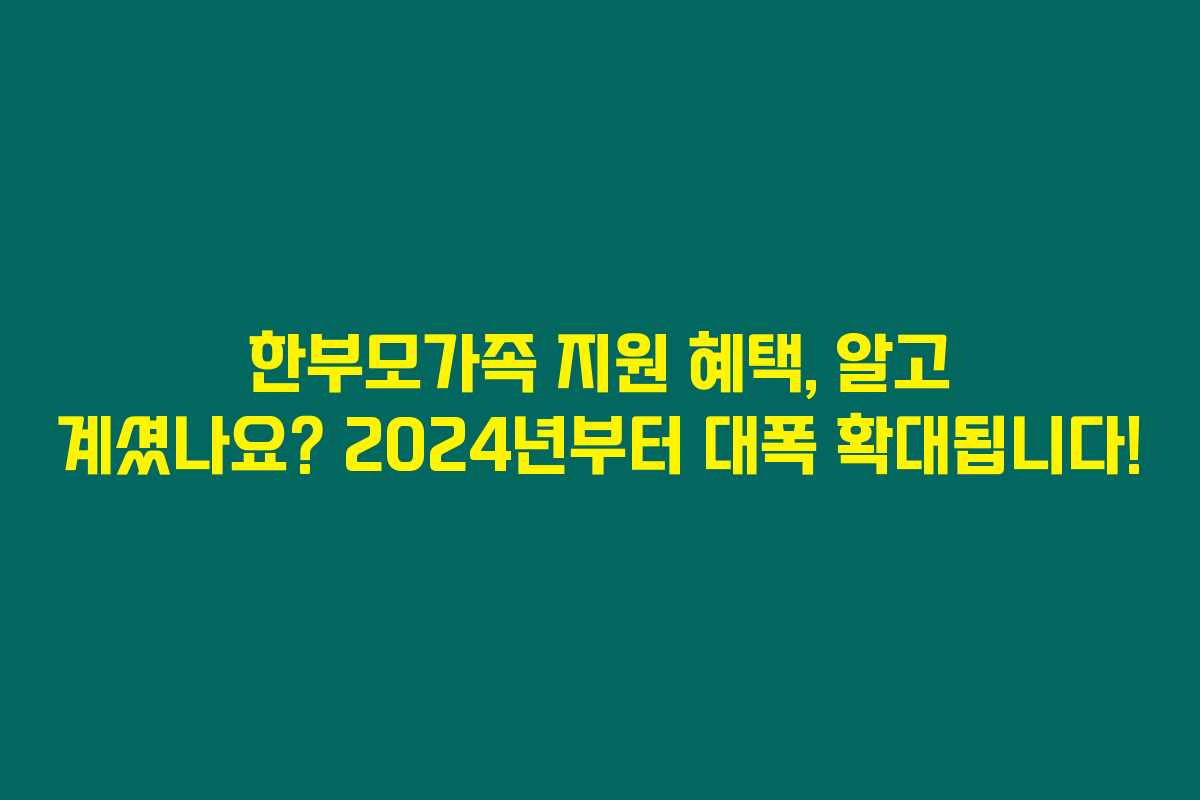 제가 직접 리서치해본 바로는 2024년부터 한부모가족 지원 혜택이 대폭 확대될 예정입니다. 기준 중위소득이 63% 이하로 완화되면서 더 많은 분들이 지원금을 신청할 수 있을 것으로 보입니다. 또한 양육비 선지급제가 도입되어 한부모가족에게 큰 도움이 될 거라 생각합니다. 아래를 읽어보시면 한부모가족 지원 혜택의 조건과 신청 방법에 대해 자세히 알아보실 수 있을 거예요.