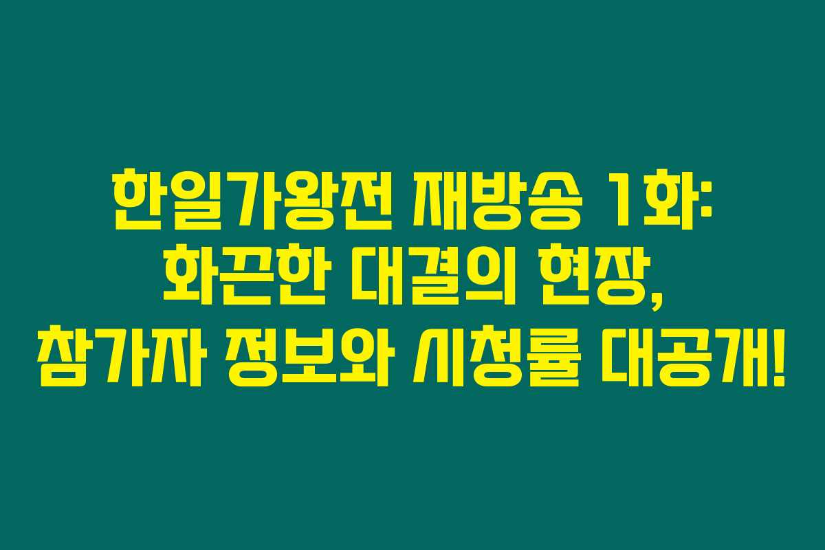 한일가왕전은 대한민국과 일본의 대표 트로트 가수들이 한 자리에 모여 치열한 경쟁을 펼치는 프로그램입니다. 현역가왕 TOP7과 트롯걸즈재팬 TOP7이 맞붙어, 어떤 재미있는 상황과 감동적인 순간들이 펼쳐질지 여러분을 기대하게 만들죠. 이들이 어떤 방식으로 평가받고, 초회 시청률이 어떻게 나왔는지 알아볼까요?