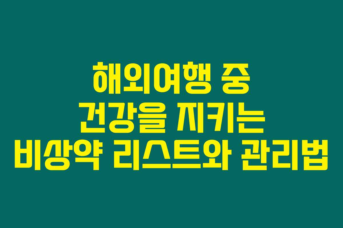 제가 직접 경험해본 결과로는, 해외여행 중 건강 관리를 소홀히 하면 여행의 즐거움이 반감될 수 있더라고요. 갑작스러운 몸살이나 설사 같은 질병이 발생할 수 있기 때문에, 필수적으로 챙겨야 할 비상약 리스트를 통해 건강을 지키는 방법을 알아보세요. 아래를 읽어보시면, 여행 전 준비가 얼마나 중요한지 깨닫게 될 거예요.
