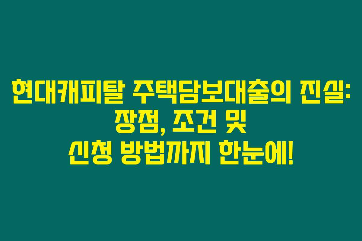 - 현대캐피탈 주택담보대출 후기: 무엇이 좋을까?