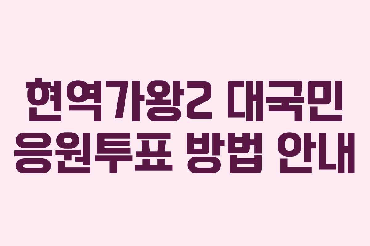 현역가왕2의 대국민 응원투표는 모바일과 PC에서 모두 가능하며, 간편한 방법으로 진행됩니다. 투표는 하루 한 번 가능하니, 매일 참여하여 응원하는 가수에게 힘을 주세요.