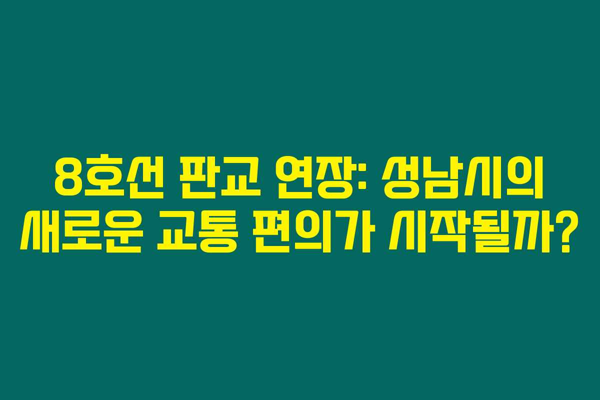 제가 직접 경험해본 결과로는, 성남시의 ‘지하철 8호선 판교 연장’ 사업은 지역 주민들에게 큰 변화를 가져올 수 있는 중요한 프로젝트입니다. 성남시는 이 사업을 통해 교통 편의를 높이고 지역 균형 발전을 도모할 것으로 기대하고 있습니다. 아래를 읽어보시면 8호선 판교 연장의 배경과 경제성, 기대 효과에 대해 자세히 알아보실 수 있습니다.