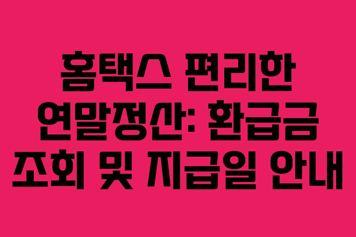 연말정산은 매년 직장인들이 기대하는 중요한 시기입니다. 홈택스의 편리한 연말정산 서비스를 통해 쉽게 환급금을 조회하고 예상 세액을 계산할 수 있습니다. 이번 포스팅에서는 연말정산의 기본 정보와 환급금 조회 방법, 지급일에 대해 자세히 설명하겠습니다.