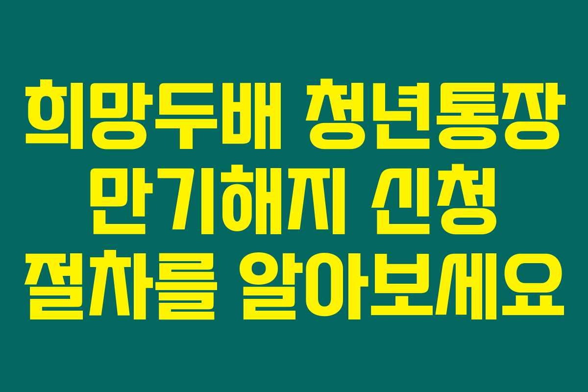 희망두배 청년통장 만기해지를 미루고 계신가요? 만기해지 신청 기간 내 하지 않으면 정말 어려운 상황에 처할 수 있어요. 만기해지 신청 방법에 대해 자세히 안내해 드릴게요.