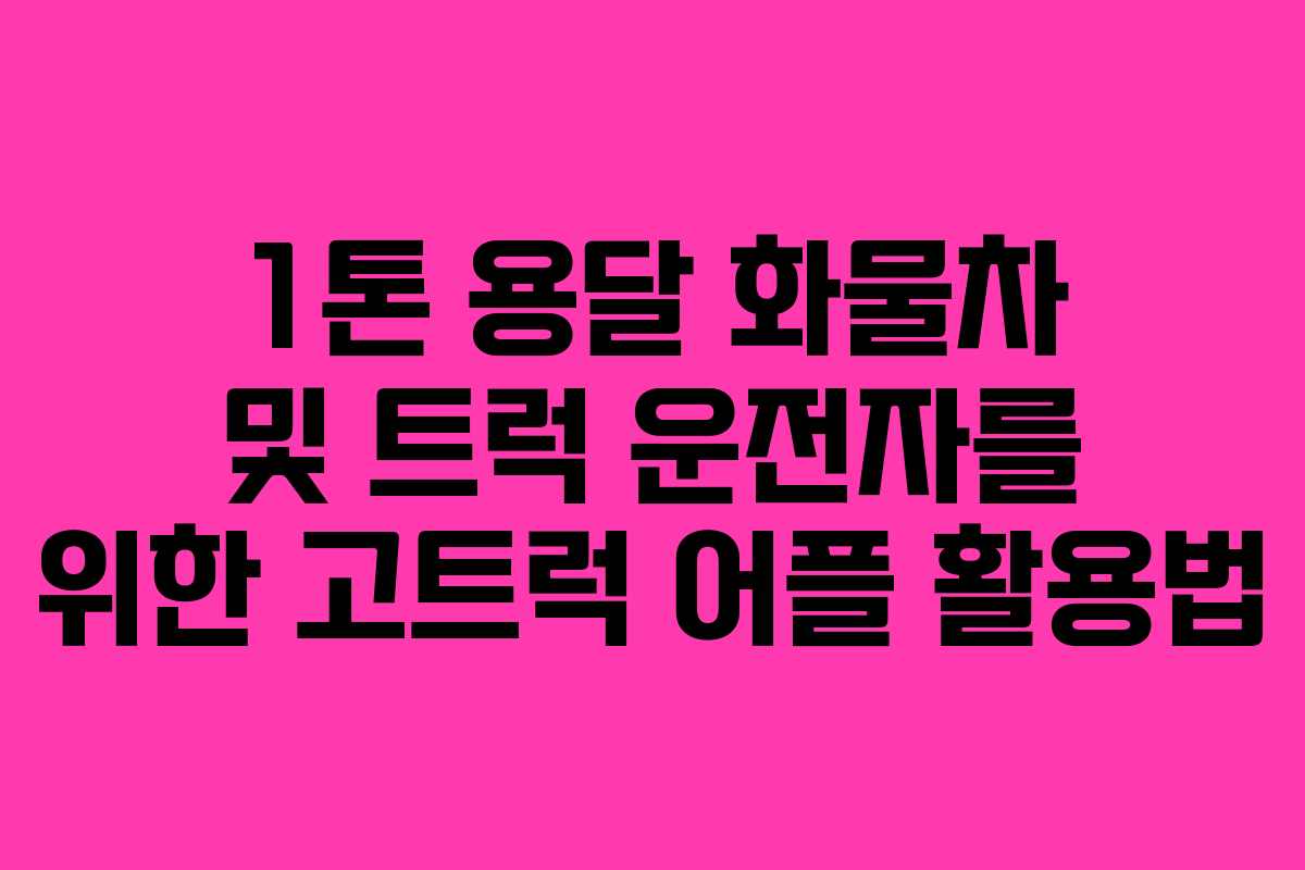 1톤 용달 화물차 및 트럭 운전자를 위한 고트럭 어플 활용법