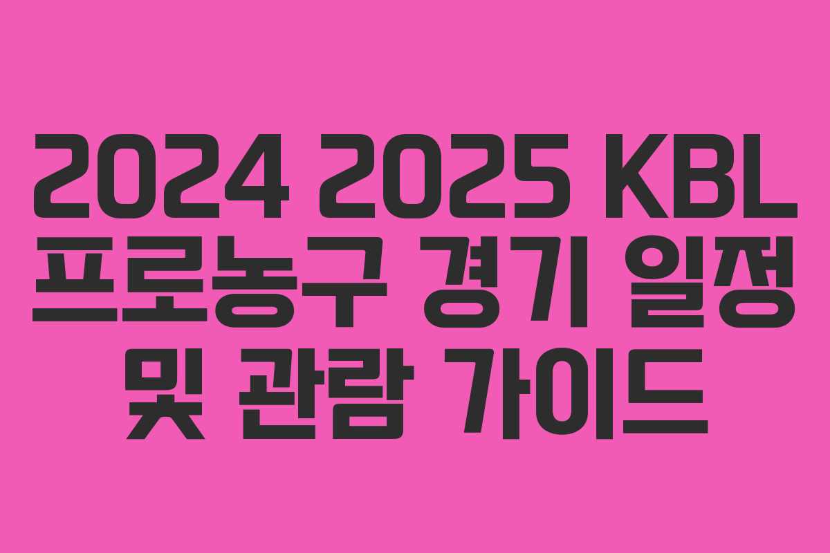 2024 2025 KBL 프로농구 경기 일정 및 관람 가이드
