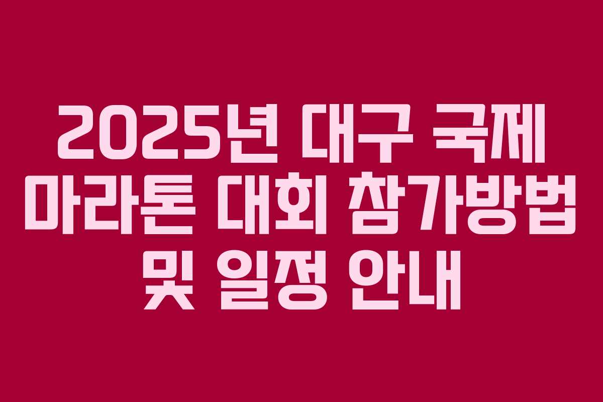 2025년 대구 국제 마라톤 대회는 마라톤 애호가들에게 큰 기대를 모으고 있습니다. 대구에서 열리는 이 대회의 참가 방법과 일정, 코스, 교통 통제 사항 등을 자세히 살펴보겠습니다.