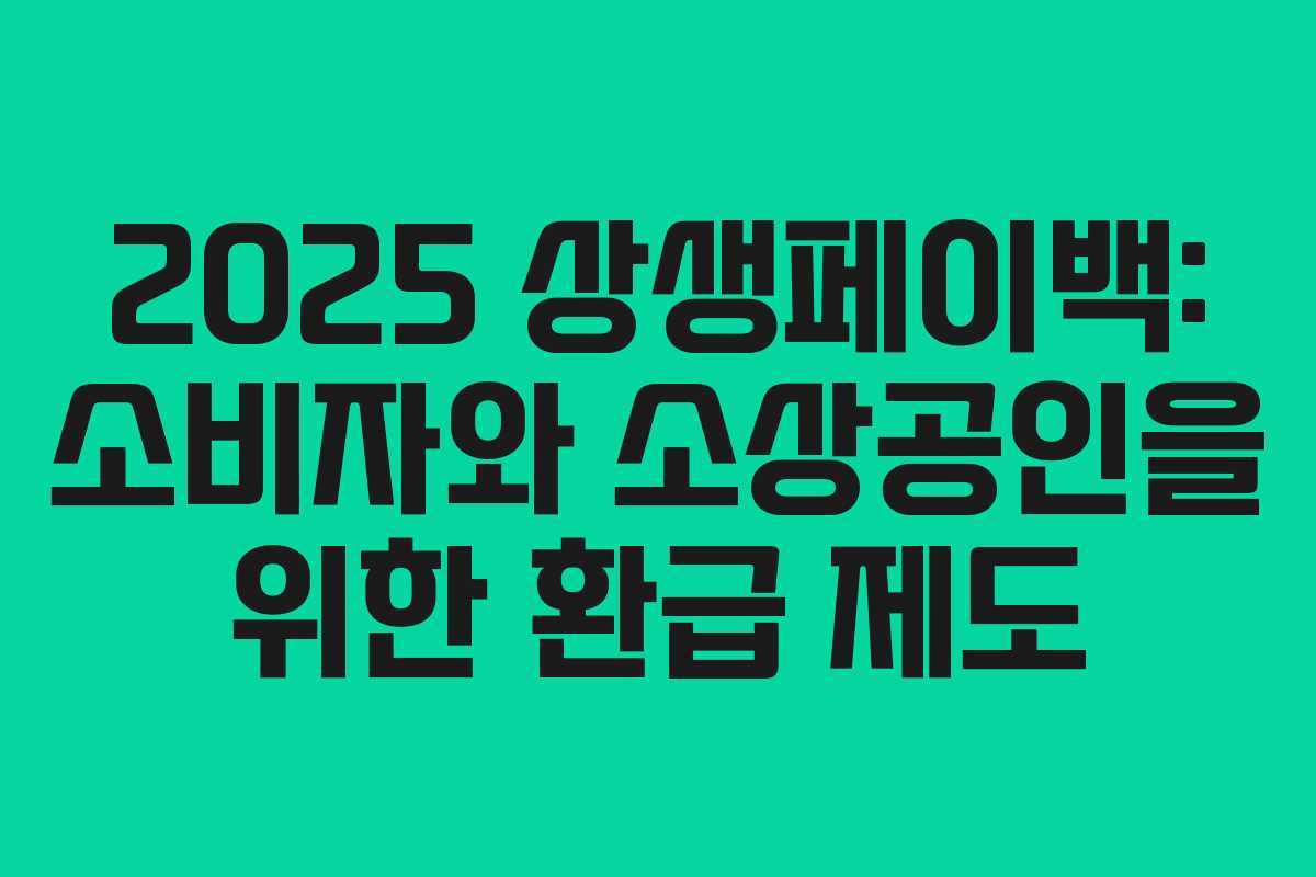 2025 상생페이백: 소비자와 소상공인을 위한 환급 제도