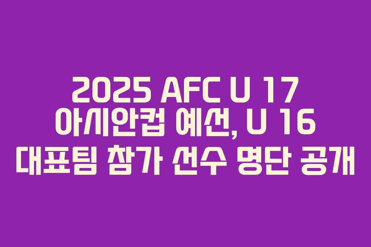 2025 AFC U-17 아시안컵 예선에 참가할 U-16 대표팀의 선수 명단이 대한축구협회에 의해 발표되었습니다. 이번 예선은 중국에서 열리며, 백기태 감독이 이끄는 대표팀은 소집훈련 중입니다. 선수들은 마지막 훈련을 통해 컨디션을 조율하고 있습니다.