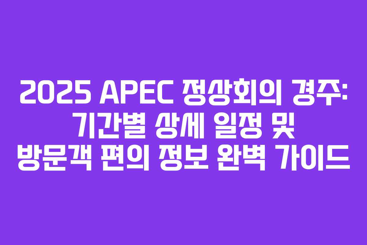 2025년 10월, 경주에서 열리는 APEC 정상회의는 아시아 태평양 지역의 중요한 외교 행사로, 각국 정상들이 모여 다양한 현안을 논의하는 자리입니다. 이번 포스트에서는 정확한 일정과 방문객을 위한 유용한 정보를 종합하여 소개하겠습니다.