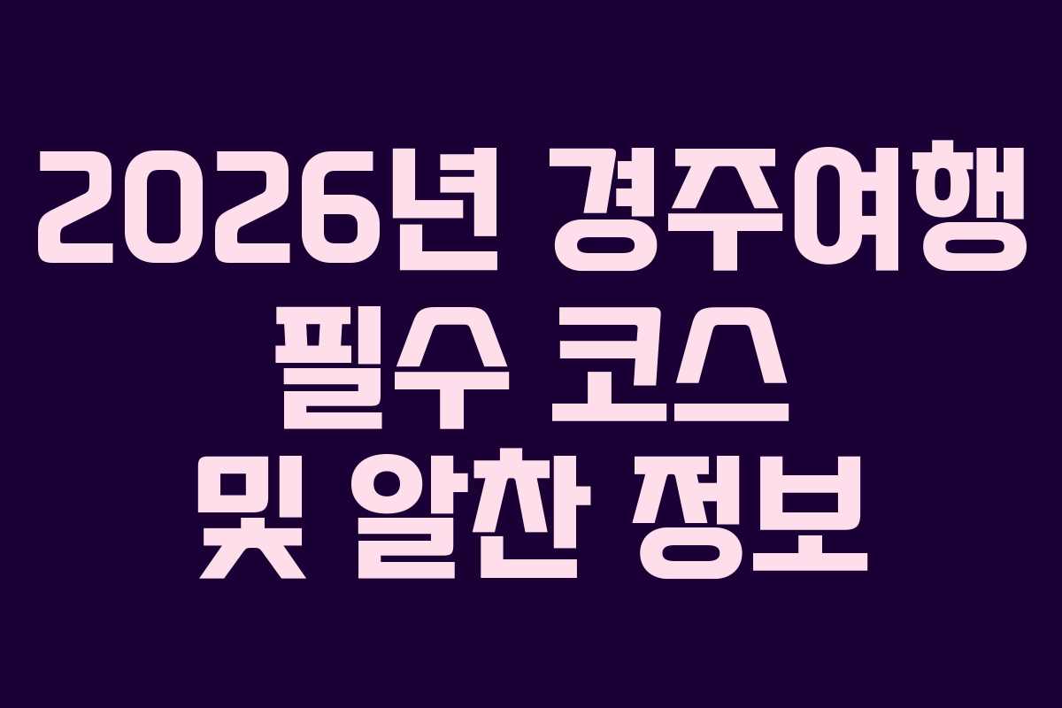 2026년 경주여행 필수 코스 및 알찬 정보