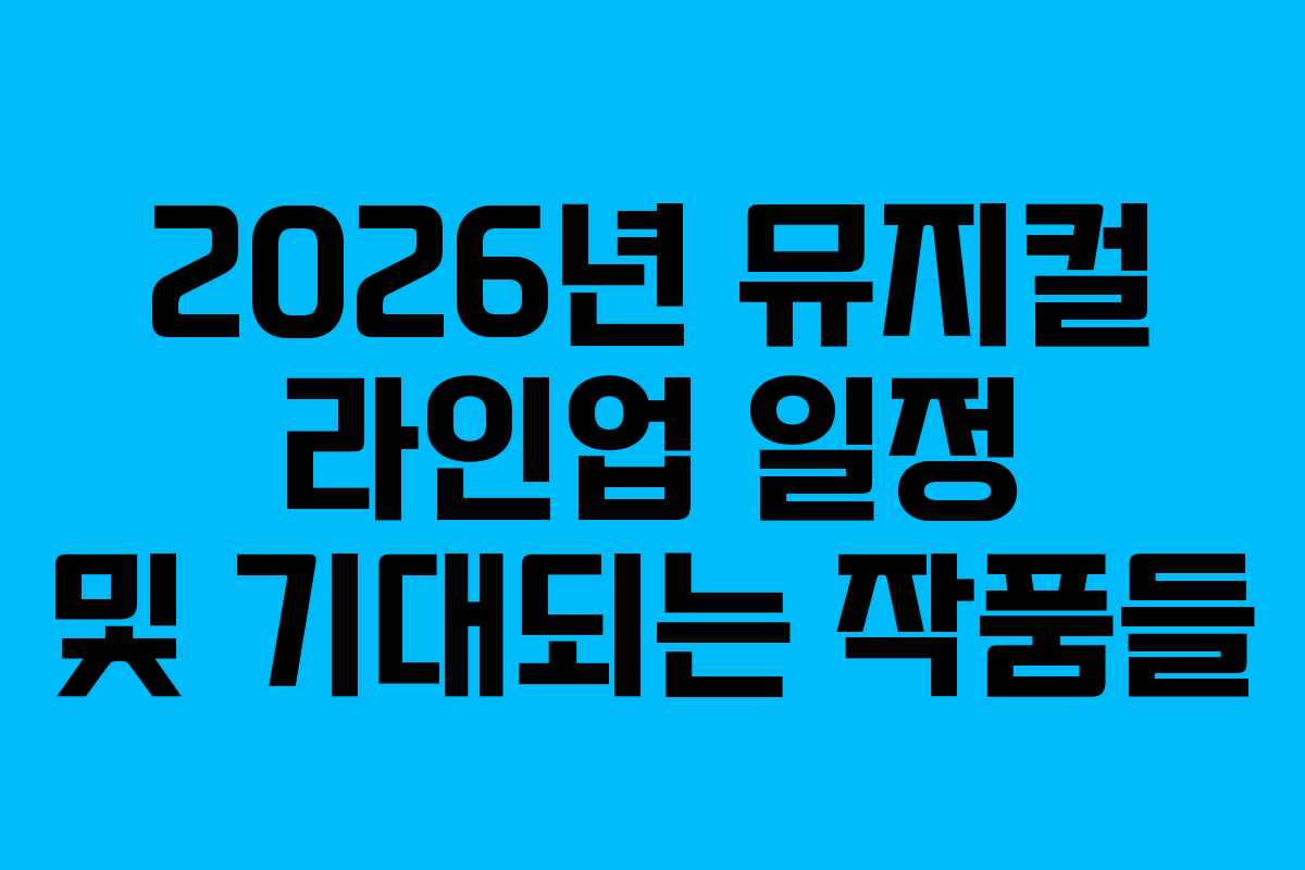 2026년 뮤지컬 라인업 일정 및 기대되는 작품들