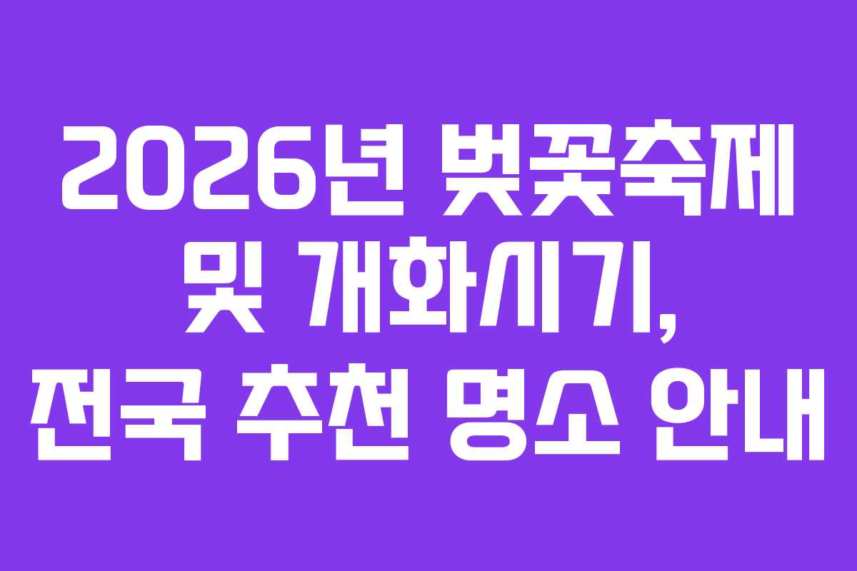 2026년 봄이 다가오며 전국 각지에서 벚꽃축제가 준비되고 있다. 많은 이들이 기다려온 벚꽃 시즌에 맞춰 가족, 친구, 연인과 함께 즐길 수 있는 다양한 명소와 축제 일정이 소개된다. 특히, 벚꽃이 만개하는 시기에는 아름다운 경관과 함께 특별한 경험을 선사하는 축제들이 개최되므로 미리 계획을 세우는 것이 좋다.