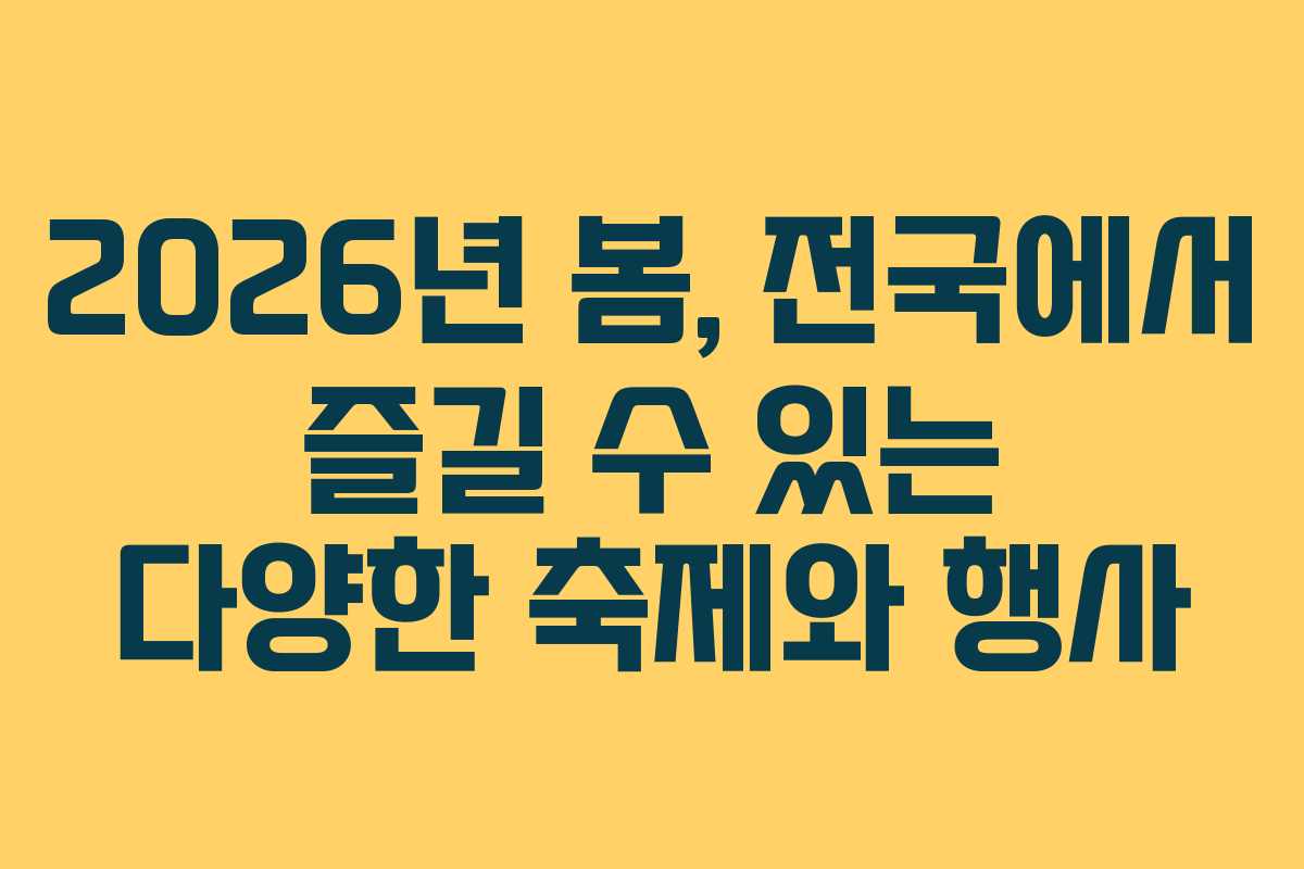 2026년 봄이 다가오면서 전국 각지에서 열리는 다양한 축제와 행사가 많은 사람들의 관심을 끌고 있다. 특히 벚꽃이 만개하는 시기에 맞춰 여러 지역에서 다채로운 프로그램이 마련되어 있어 가족, 친구, 연인과 함께 즐기기 좋은 기회가 될 것이다. 이번 글에서는 2026년에 개최되는 주요 축제와 행사들을 소개하고, 그 특징과 참여 방법에 대해 알아보겠다.