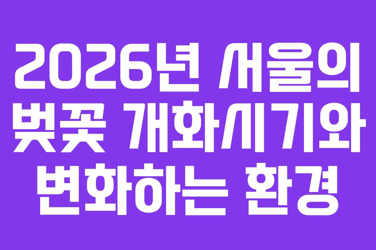 2026년 서울의 벚꽃 개화시기가 어떻게 될지 기대가 된다. 그 시기에 맞춰 우리는 벚꽃을 즐기고, 그 의미를 되새기는 시간을 가질 수 있기를 바란다. 벚꽃은 단순한 꽃이 아니라, 우리의 환경과 삶을 돌아보게 하는 소중한 상징이기 때문이다.