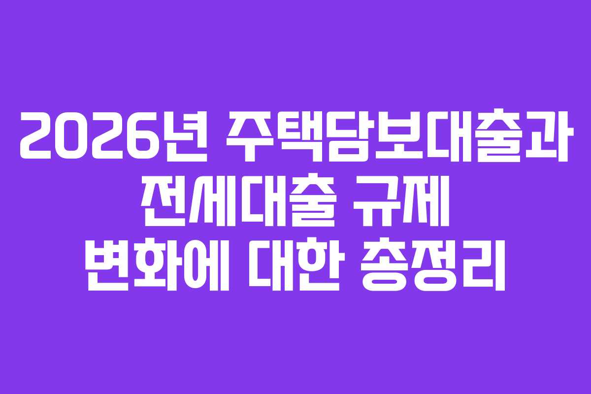 2026년을 맞이하여 주택담보대출과 전세대출의 규제가 강화되었습니다. 정부의 정책은 실수요자와 전세입자, 다주택자에게 큰 영향을 미치고 있으며, 이로 인해 주택 시장의 구조가 변화하고 있습니다. 이번 글에서는 2026년 기준의 주요 변경사항을 한눈에 정리하고, 각 주체가 알아야 할 핵심 사항을 안내합니다.