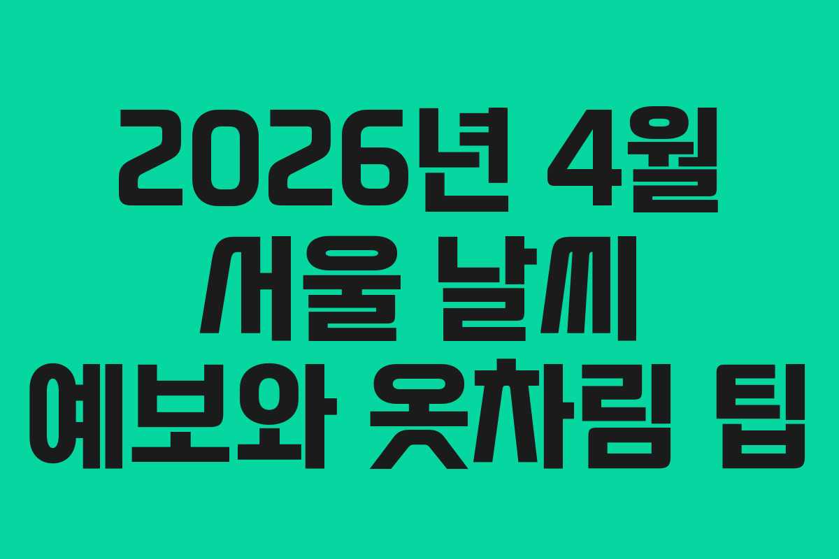 2026년 4월 서울의 평균 기온은 아침 최저 9°C에서 낮 최고 17°C로 예상됩니다. 이러한 날씨는 일교차가 크기 때문에 여러 겹의 옷을 입는 것이 좋습니다. 서울의 4월은 비 오는 날이 약 5~8일 정도 있을 것으로 전망되며, 이때는 우산을 준비하는 것이 현명합니다.