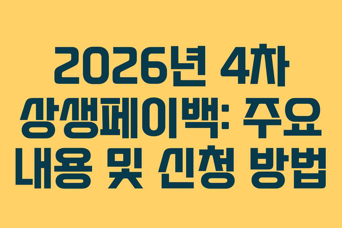 2026년 4차 상생페이백이 발표되었습니다. 많은 분들이 이 기회를 놓치지 않도록 핵심 내용을 정리하여 안내합니다. 이번 4차 상생페이백은 12월에 진행되며, 반드시 새롭게 신청해야 합니다.