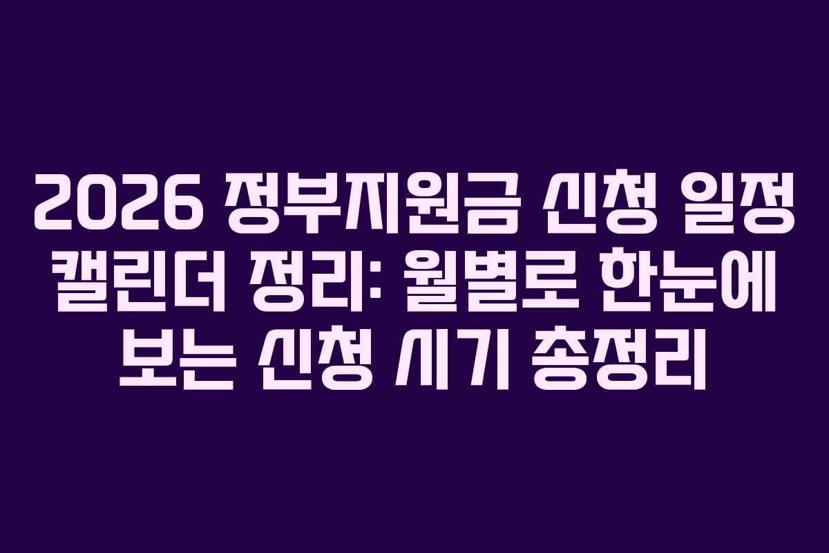 2026 정부지원금 신청 일정 캘린더 정리: 월별로 한눈에 보는 신청 시기 총정리