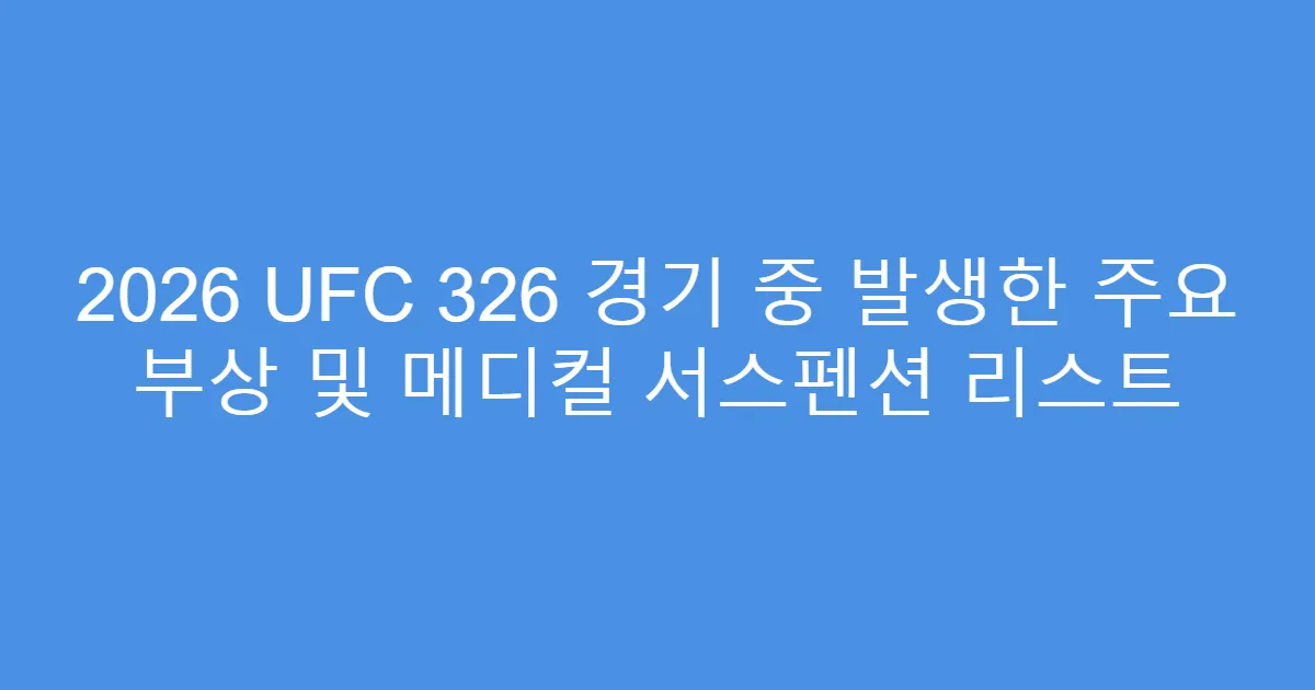 - ⚡ 2026 UFC 326 경기 중 발생한 주요 부상 및 메디컬 서스펜션 리스트와 경기 안전 규정 변화