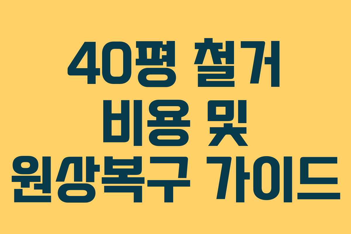 철거 비용은 면적, 자재 종류, 위치에 따라 달라집니다. 일반적으로 40평 규모의 음식점 철거 비용은 300만 원에서 500만 원입니다.