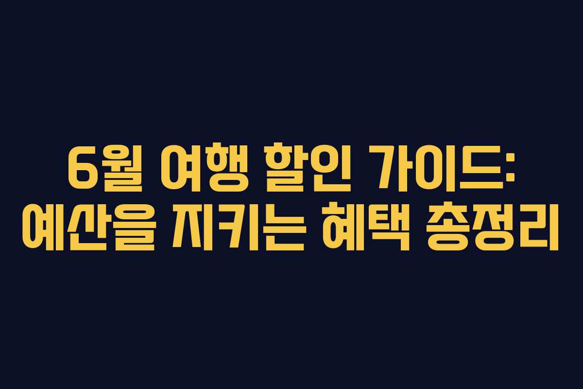 6월 여행 할인 가이드: 예산을 지키는 혜택 총정리