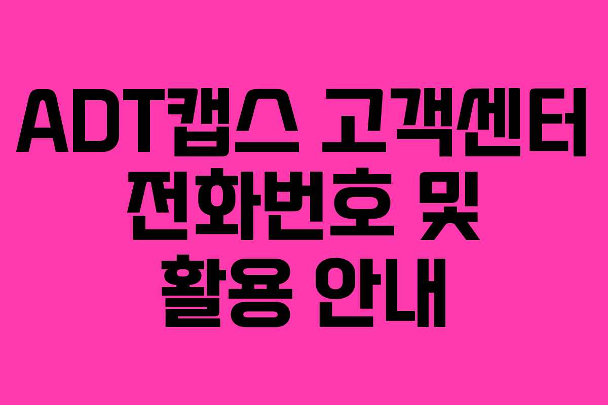 - ADT캡스 고객센터 전화번호 활용 가이드