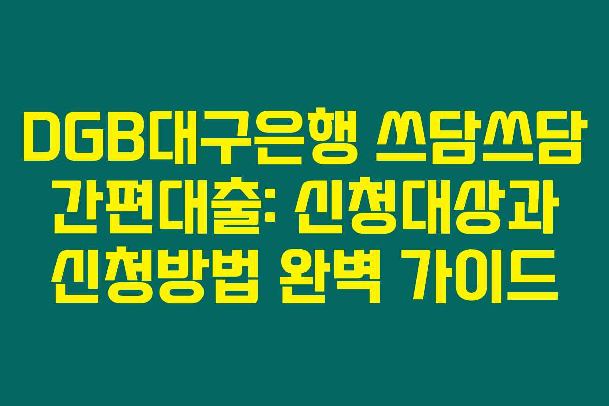DGB대구은행의 쓰담쓰담 간편대출은 수요가 많고 편리한 조건 덕분에 많은 도움이 될 수 있어요. 필요한 분들은 위의 가이드를 참고해 신청해보세요.